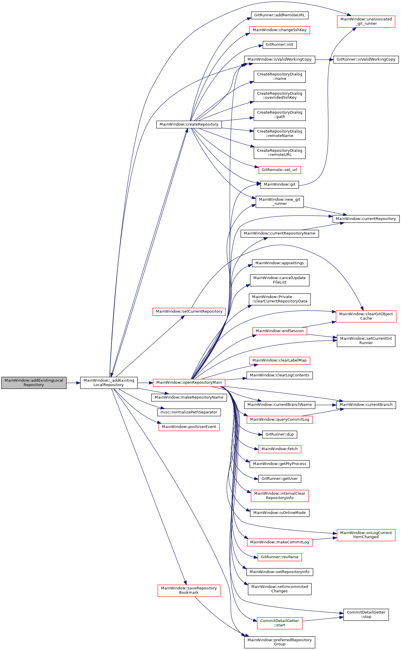 | | MainWindow::addExistingLocalRepository. More...